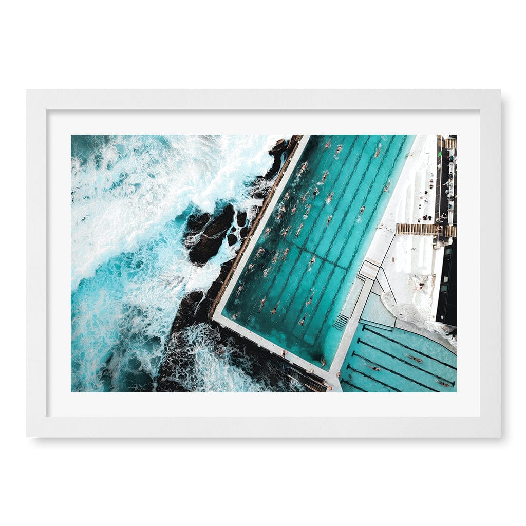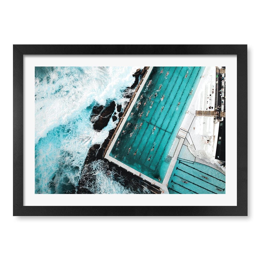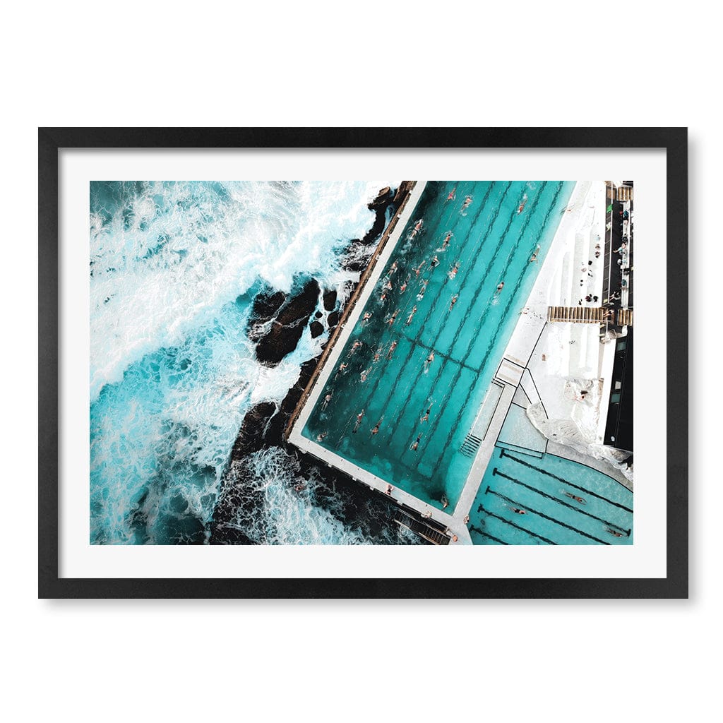 This aerial photo was taken above the famous Bondi Beach Icebergs Swimming Club, Sydney NSW. Located at the southern end of Bondi Beach, Bondi Icebergs Swimming Club was first established in 1929 and has become an international landmark.
