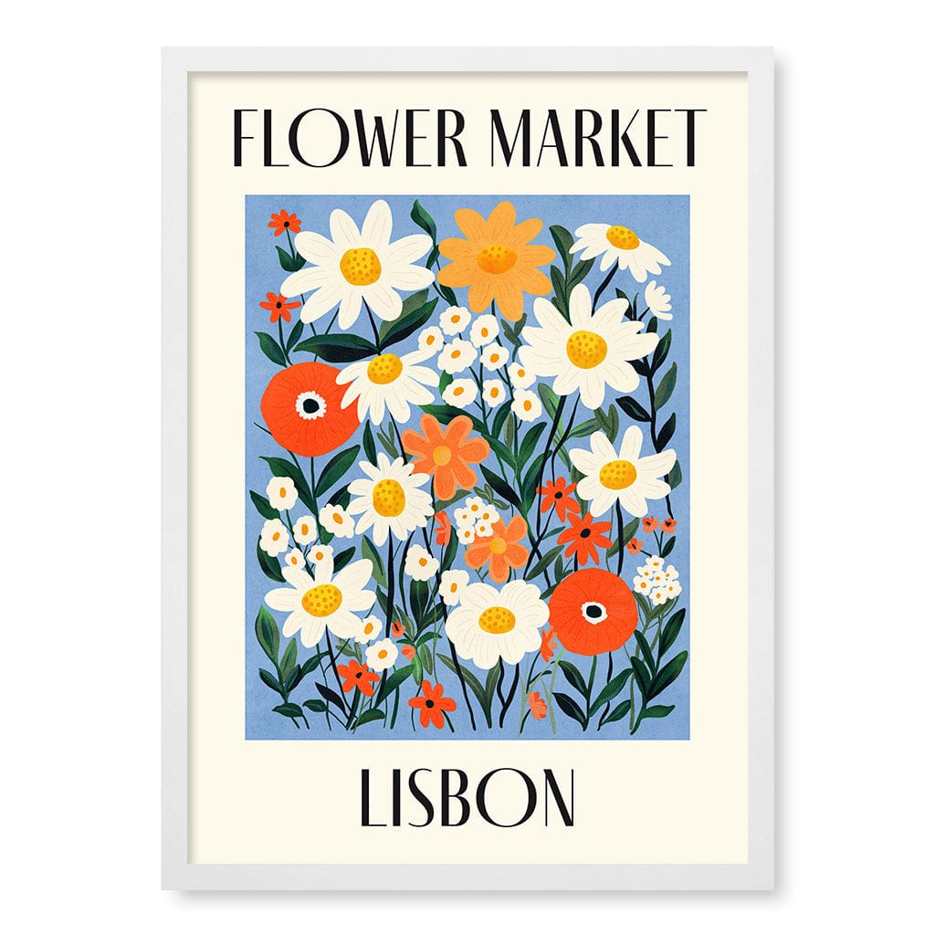 Brighten up your living space with a stunning framed modern wall art print capturing the vibrant essence of Flower Market Lisbon by artist Dirkie Nell. This contemporary piece falls under the Places style category, bringing a touch of modern elegance to your home decor.