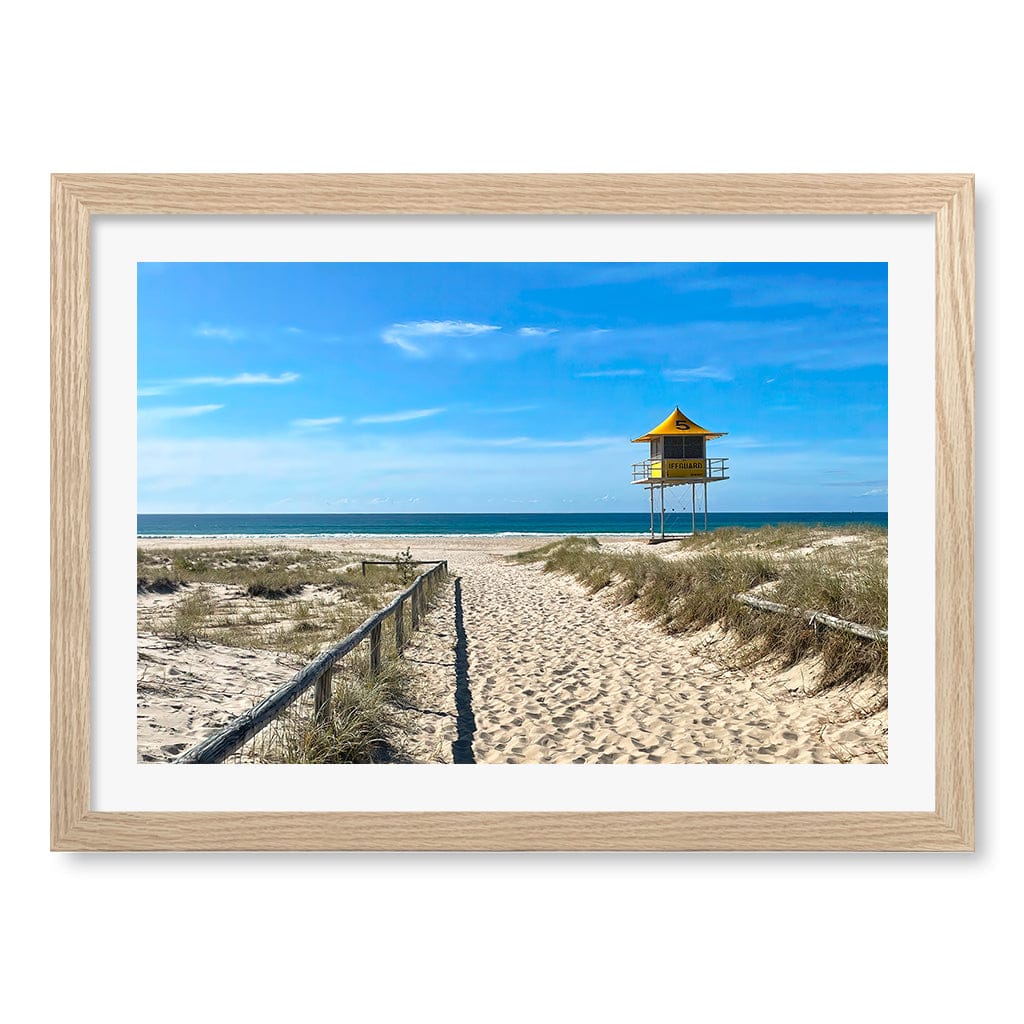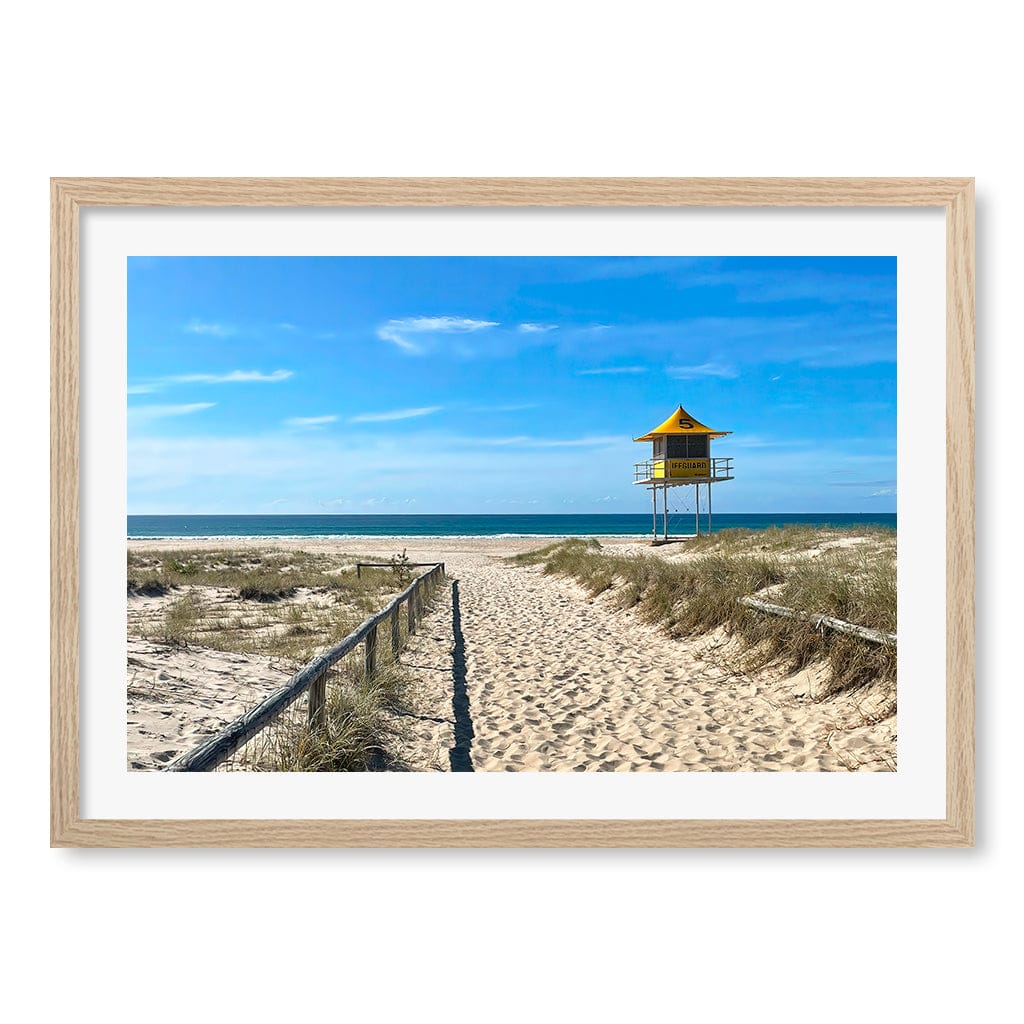 This photo was of a sandy beach entrance and lifeguard tower was taken behind the North Kirra Beach Surf Club at the Gold Coast, Queensland.