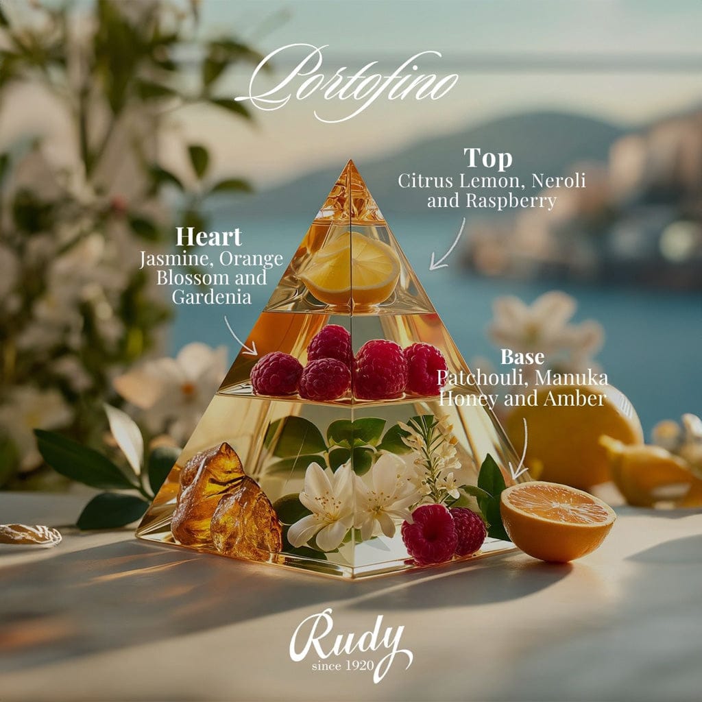 Portofino is an iconic Italian tourist destination. This little coastal village build around the bay, with lofty and colourful houses is famous around the world. Our tribute is dedicated to Portofino for its remarkable ability to preserve this corner of paradise. Where notes of lemon and raspberry entwine with jasmine and gardenia, resting upon a base of patchouli, manuka honey, and gardenia.